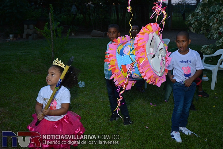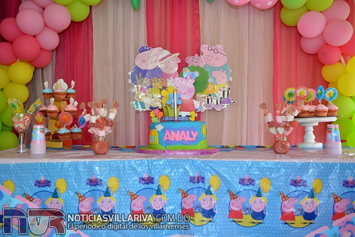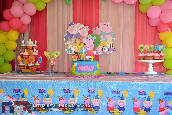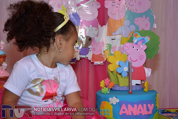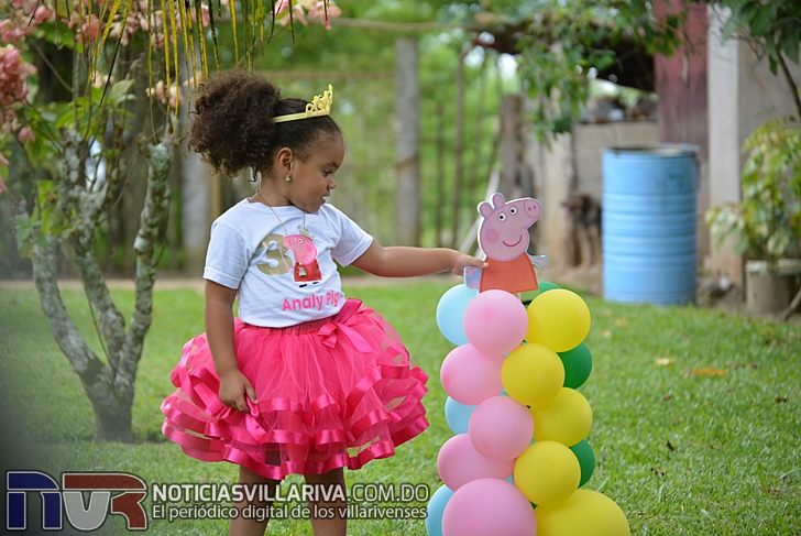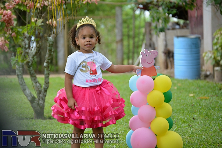 Con decoración de Peppa Pig, bailes, cantos, dulces, helados y la alegría de sus homogéneos  Analy disfrutó del festejo de sus tres años.